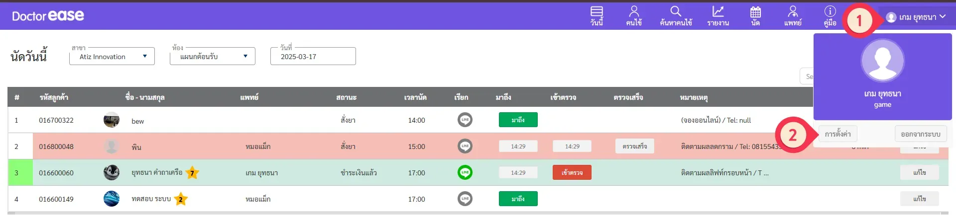 1️⃣ คลิกที่ชื่อโปรไฟล์ของคุณ 2️⃣ คลิก “การตั้งค่า