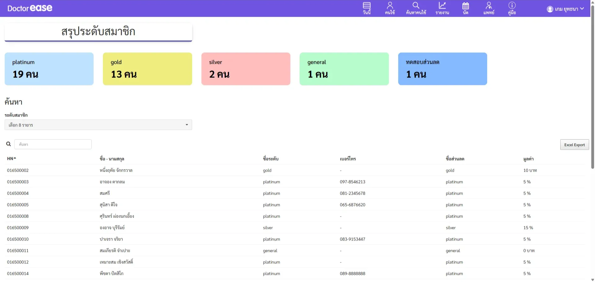 ระดับสมาชิก → ดูจำนวนลูกค้าในแต่ละระดับสมาชิก