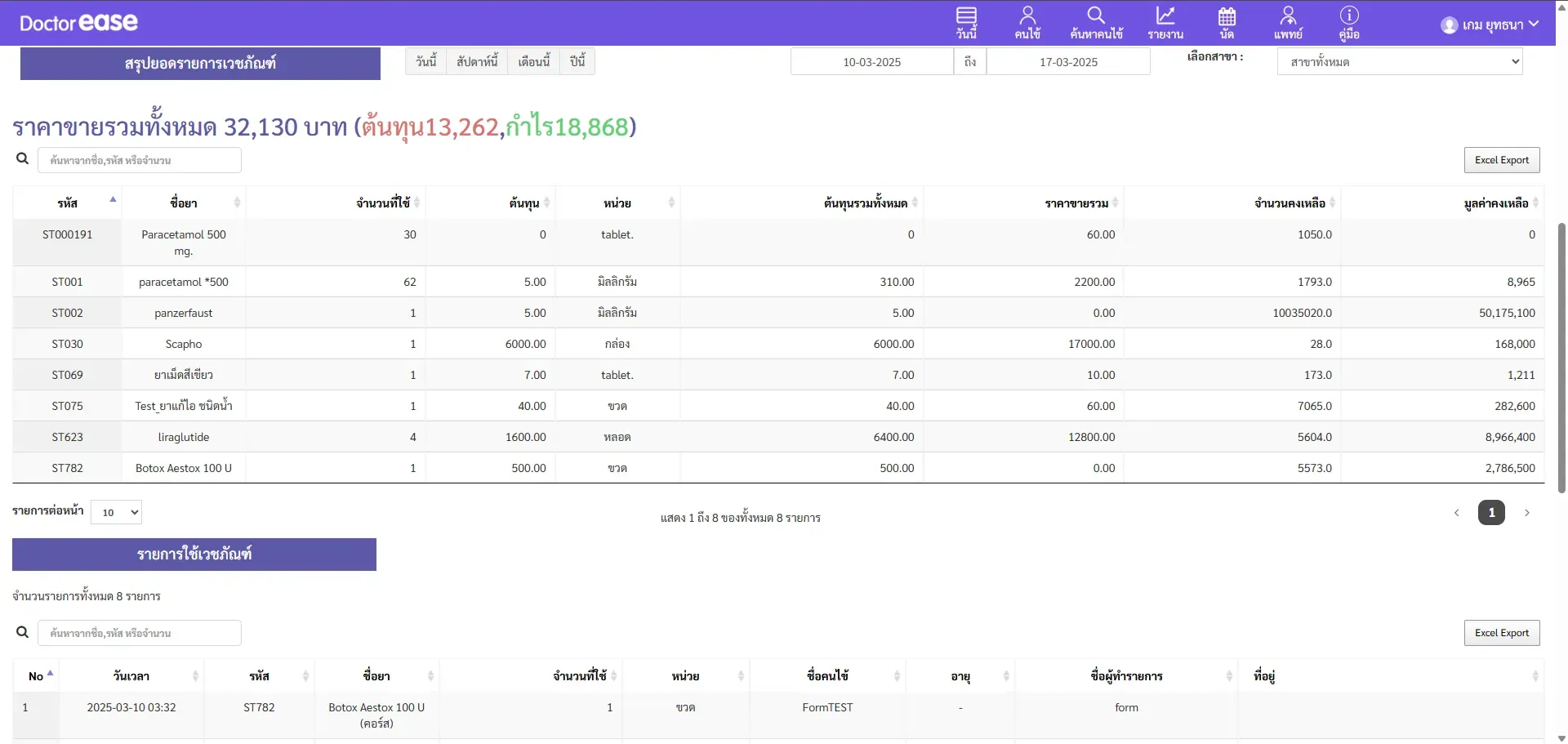 • ดูว่ามีการจ่าย ยา/สินค้าให้กับลูกค้าคนไหน ในช่วงวันที่เลือก