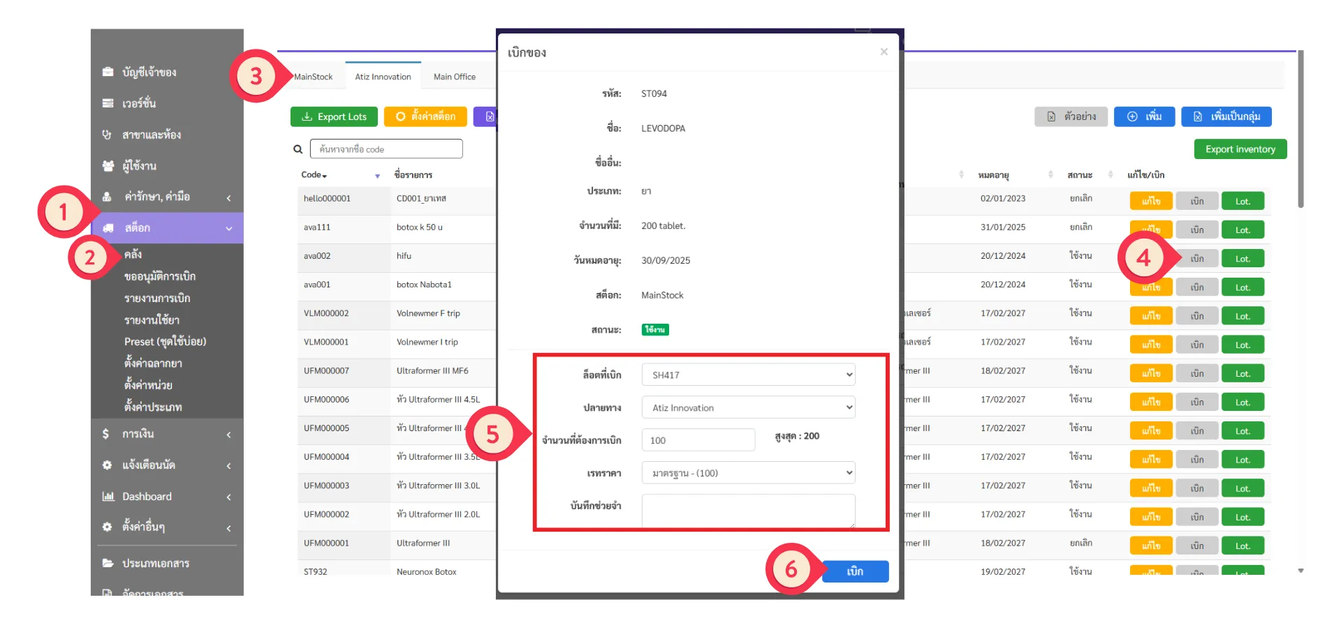 ล็อตที่เบิก → เลือกล็อตสินค้าที่ต้องการเบิกออก