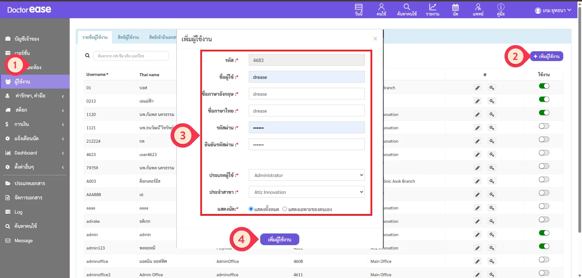วิธีการเพิ่ม User ใช้งานด้วยตัวเองใน DoctorEase