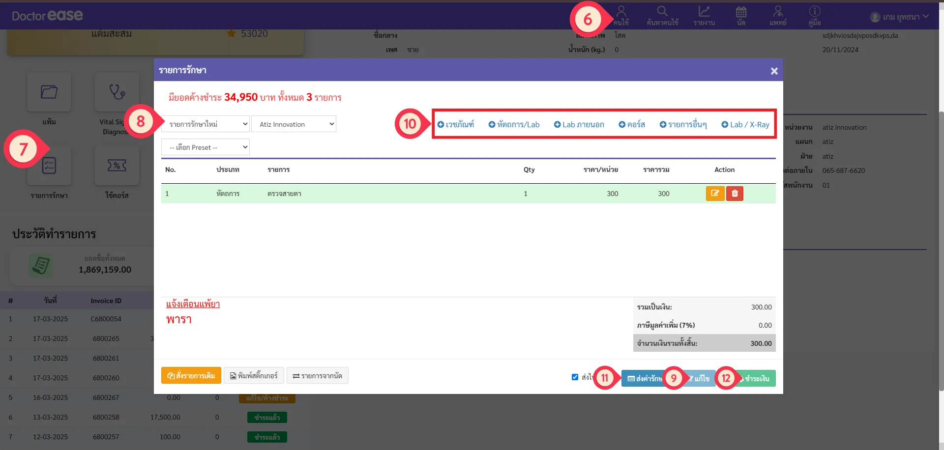 • ไปที่ประวัติลูกค้า เพื่อเพิ่มรายการรักษาย้อนหลัง