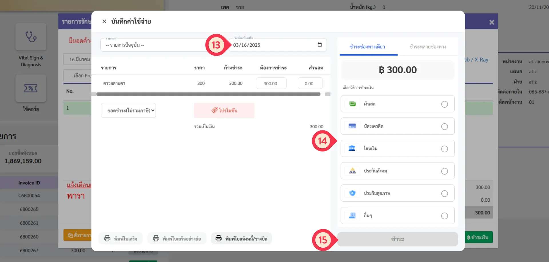 วิธีเพิ่มใบแจ้งหนี้ย้อนหลังใน DoctorEase