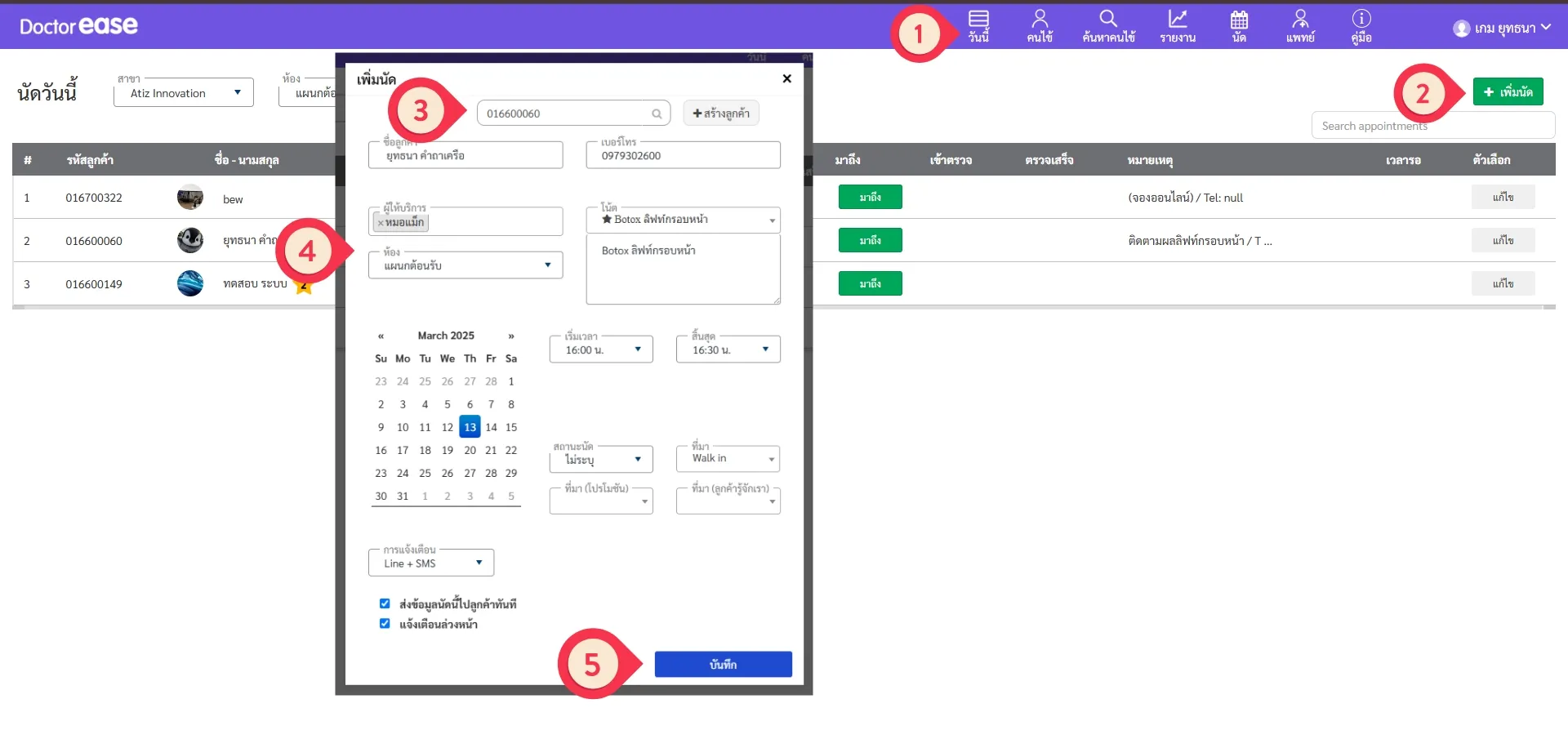 ✔️ ลดความผิดพลาดในการลงนัด และป้องกันคิวซ้อน
