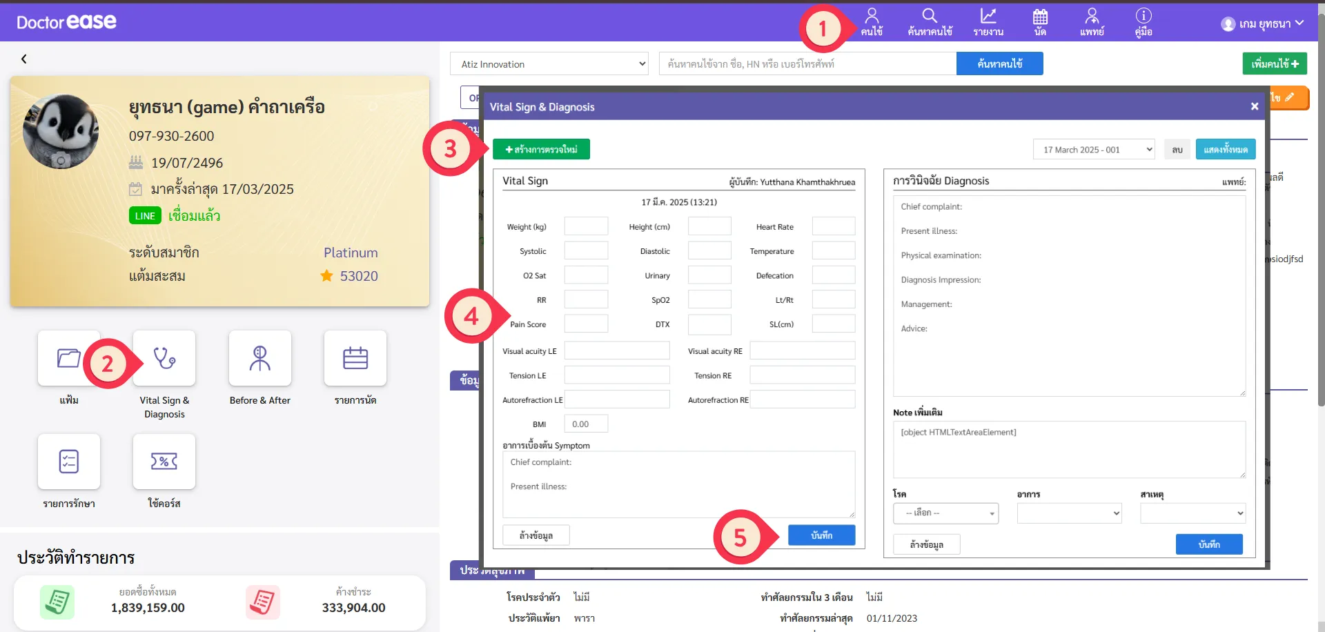 ฟีเจอร์ Vital Sign & Diagnosis (เก็บประวัติการรักษา) ใน DoctorEase